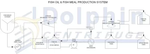 The following diagram shows a fish oil and fish meal processing plant designed by Dolphin Centrifuge.